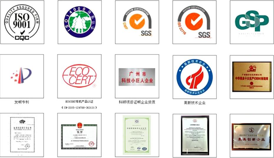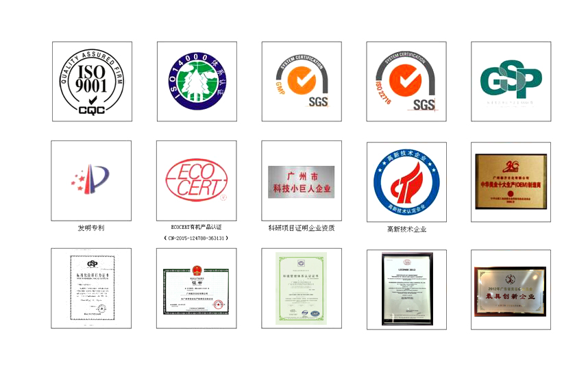 ●公司于2007年通過(guò)SGS公司的認(rèn)證,并獲得GMPC證書● ●公司于2009年榮獲廣州市高新技術(shù)企業(yè)協(xié)會(huì)會(huì)員單位 ●公司于2011年獲得廣州市花都食品藥物質(zhì)量管理協(xié)會(huì)第三屆名譽(yù)理事 ●公司于2011年獲得國(guó)家頒發(fā)的“高新技術(shù)企業(yè)”稱號(hào) ●公司于2012年獲得廣州市花都區(qū)安全生產(chǎn)管理技術(shù)研究協(xié)會(huì)理事單位 ●公司于2012年通過(guò)法國(guó)ECOCERT(天然及有機(jī)化妝品認(rèn)證)的認(rèn)證 ●公司于2012年榮批廣州市花都區(qū)科信局頒發(fā)的“綠色化妝品工程技術(shù)中心”項(xiàng)目 ●公司于2012年獲得廣州市花都區(qū)知識(shí)產(chǎn)權(quán)試點(diǎn)企業(yè)稱號(hào) ●公司于2012年成功簽訂廣東省科學(xué)技術(shù)廳4名科技特派委員 ●公司于2013年獲得廣州市花都區(qū)科學(xué)技術(shù)獎(jiǎng)三等獎(jiǎng) ●公司于2013年通過(guò)ISO14001(環(huán)境管理體系認(rèn)證證書),并獲得ISO0001證書 ●公司于2013年獲得2012年廣東省美容化妝品行業(yè)最具創(chuàng)新企業(yè) ●公司于2014年成功獲得科技小巨人資質(zhì) ●公司于2014年通過(guò)國(guó)家AAAA標(biāo)準(zhǔn)化良好行為認(rèn)證,并獲得標(biāo)準(zhǔn)化良好行為證書 ●公司于2015年成立省級(jí)工程技術(shù)中心,獲批成立院士專家企業(yè)工作站 ●公司于2016年分析檢測(cè)中心獲國(guó)家CNAS認(rèn)證 ●公司于2017年成功獲得中國(guó)化妝品“十佳制造商”稱號(hào),連續(xù)五年獲得“有機(jī)工廠”認(rèn)證 ●公司于2018年成功獲得中國(guó)化妝品供應(yīng)鏈百?gòu)?qiáng)企業(yè)稱號(hào) ●公司于2018年成功通過(guò)兩化融合管理評(píng)定,并獲得證書 ●公司于第24屆中國(guó)美容博覽會(huì)獲得“中國(guó)化妝品優(yōu)秀供應(yīng)商” ●公司于2019年榮獲全球美妝供應(yīng)鏈權(quán)威大獎(jiǎng)——2019 COSMETECH OEM/ODM獎(jiǎng) |